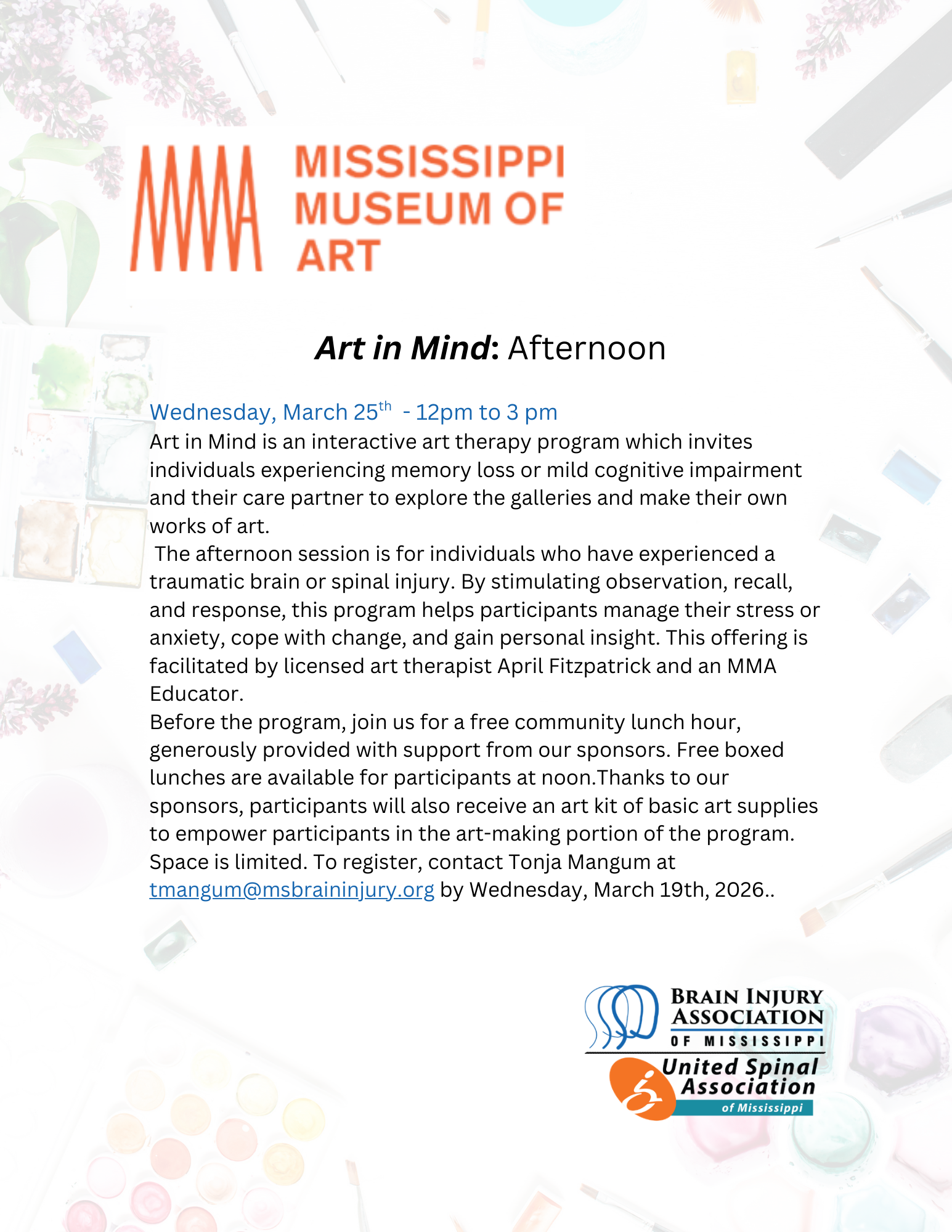 The mission of the Brain Injury Association of Mississippi & United Spinal Association of Mississippi is to enhance the quality of life for brain and spinal cord injury survivors and their families along with developing programs to prevent these injuries.